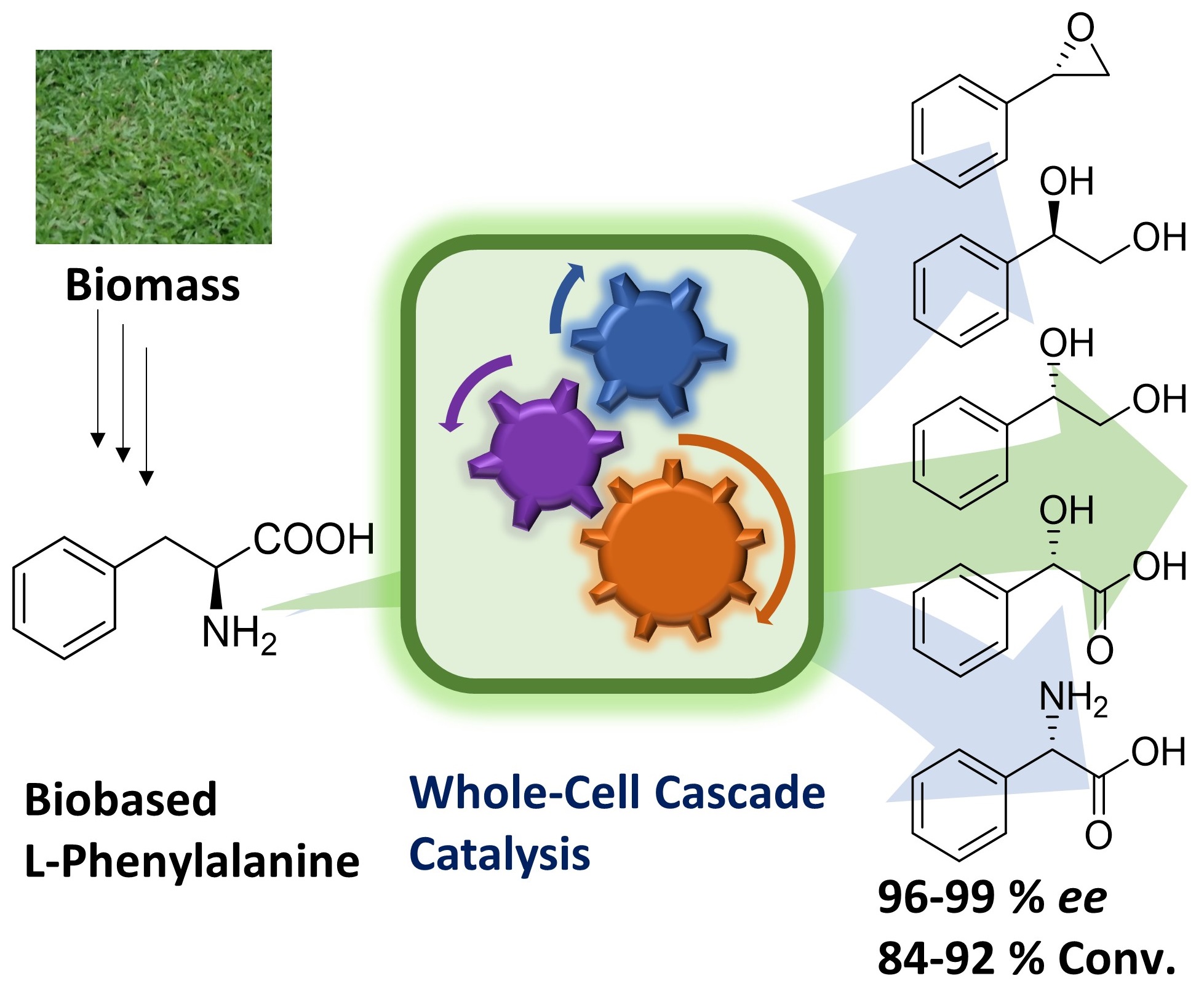 Abstract:开发全细胞多酶级联催化实现从生物基苯丙氨酸不对称合成一系列高值手性芳香族化学品。