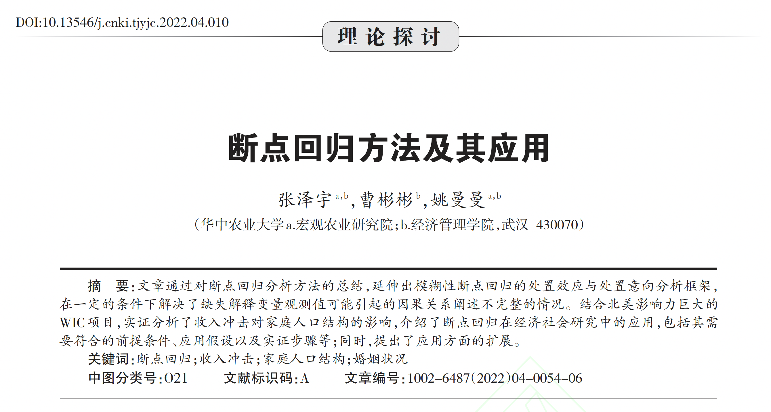 关键字:断点回归; 收入冲击; 家庭人口结构; 婚姻状况